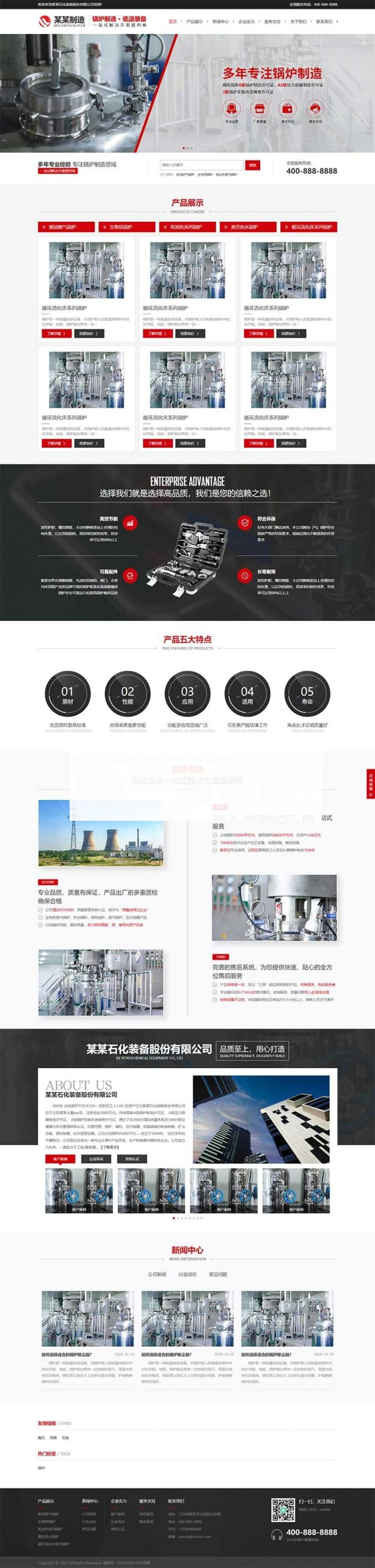 PbootCMS内核开发的网站模板,该模板适用于锅炉设备网站、石化装备网站等企业,当然其他行业也可以做,只需要把文字图片换成其他行业的即可;