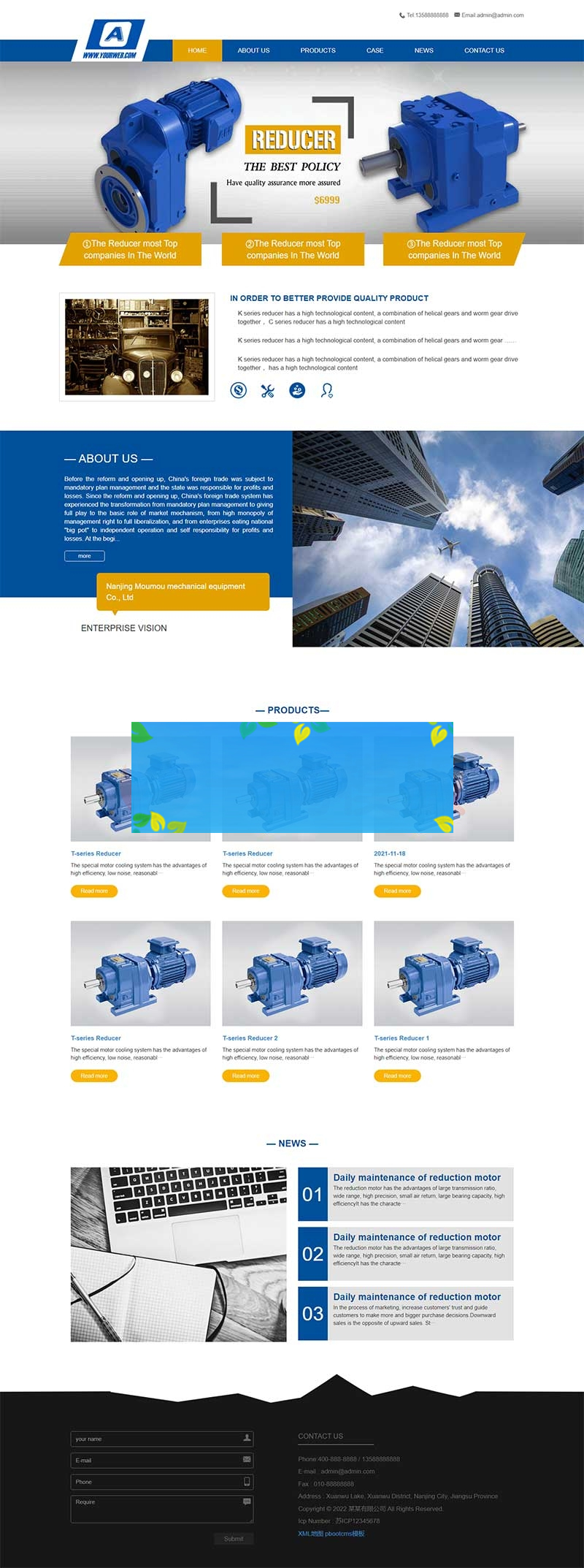 PbootCMS内核开发的网站模板,该模板适用于英文外贸网站、机械设备网站等企业,当然其他行业也可以做,只需要把文字图片换成其他行业的即可; 自适应移动端,同一个后台,数据即时同步,简单适用!附带测试数据! 友好的seo,所有页面均都能完全自定义标题/关键词/描述,PHP程