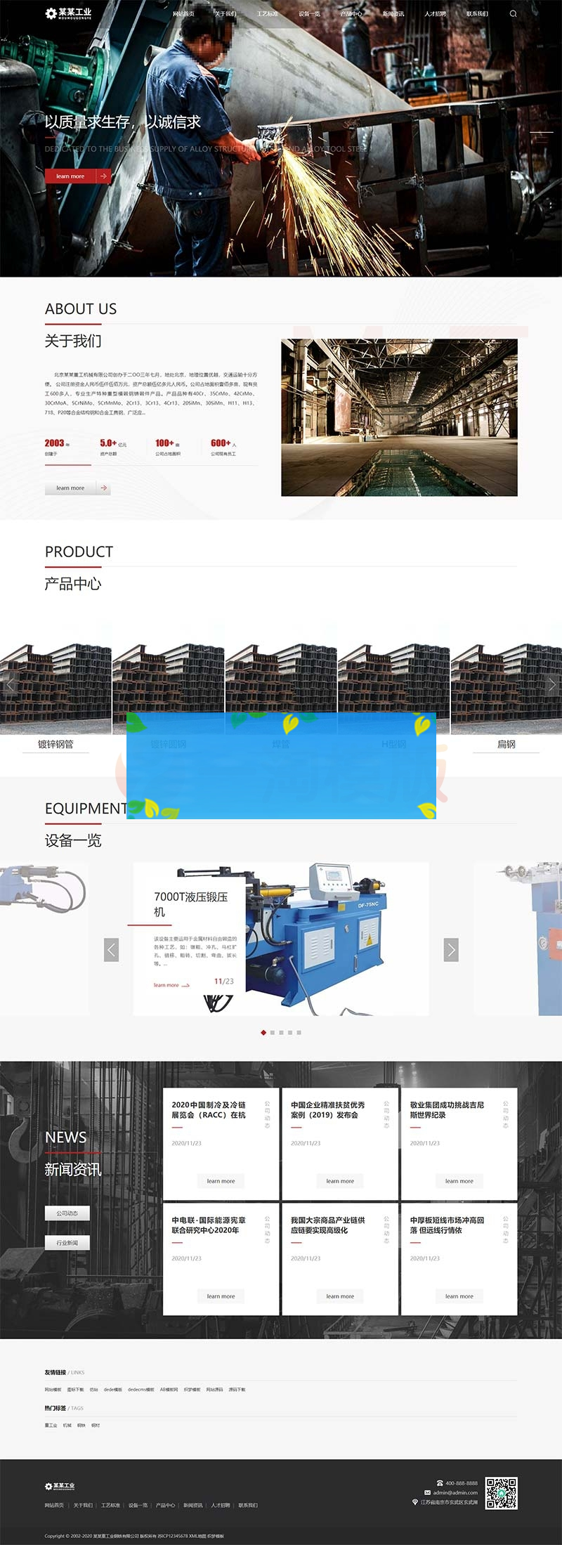 PbootCMS内核开发的网站模板,该模板适用于工业钢铁、工业机械设备等企业,当然其他行业也可以做,只需要把文字图片换成其他行业的即可;