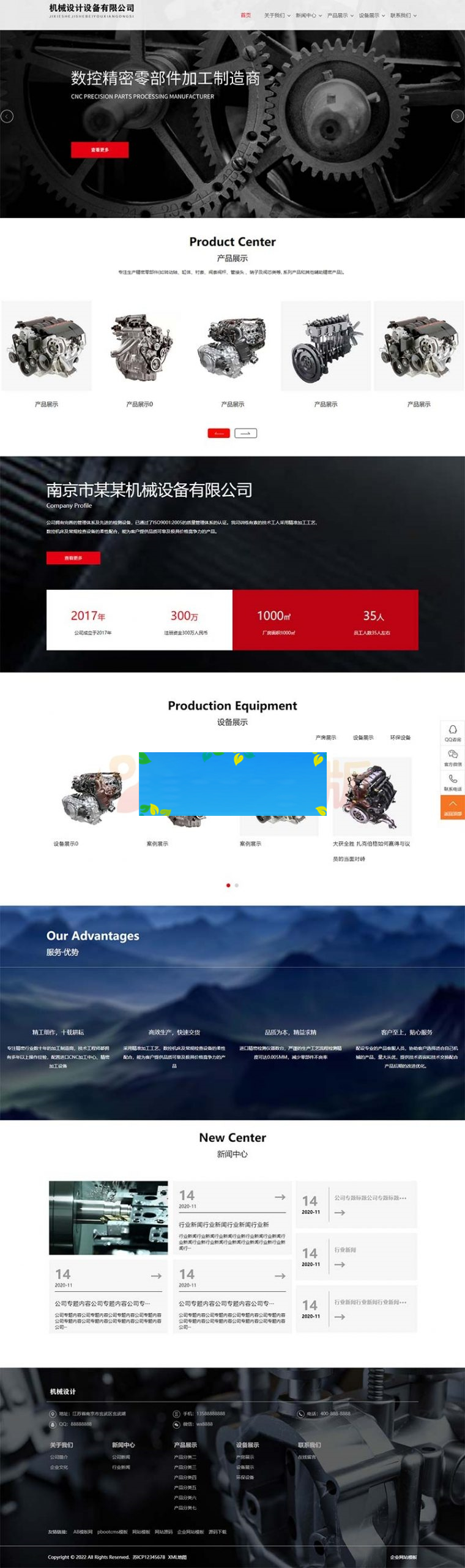 PbootCMS内核开发的网站模板,该模板适用于机械设备、宽屏大气的机械网站等企业,当然其他行业也可以做,只需要把文字图片换成其他行业的即可; 自适应,同一个后台,数据即时同步,简单适用!附带测试数据! 友好的seo,所有页面均都能完全自定义标题/关键词/描述,PHP程序,