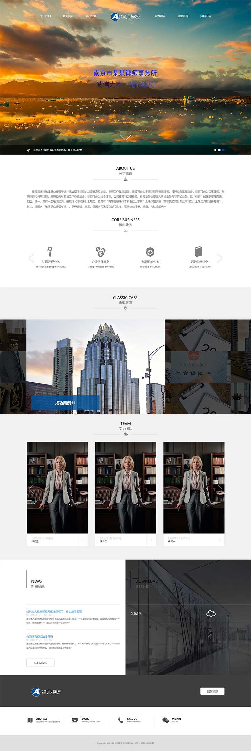 PbootCMS内核开发的网站模板,该模板适用于律师事务所网站、律师法律网站等企业,当然其他行业也可以做,只需要把文字图片换成其他行业的即可; 自适应,同一个后台,数据即时同步,简单适用!附带测试数据! 友好的seo,所有页面均都能完全自定义标题/关键词/描述,PHP程序