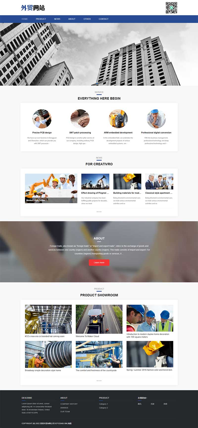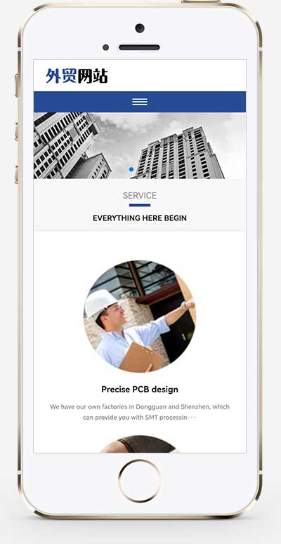 (自适应手机端)蓝色高端企业通用外贸网站源码 pbootcms响应式英文外贸企业网站模板