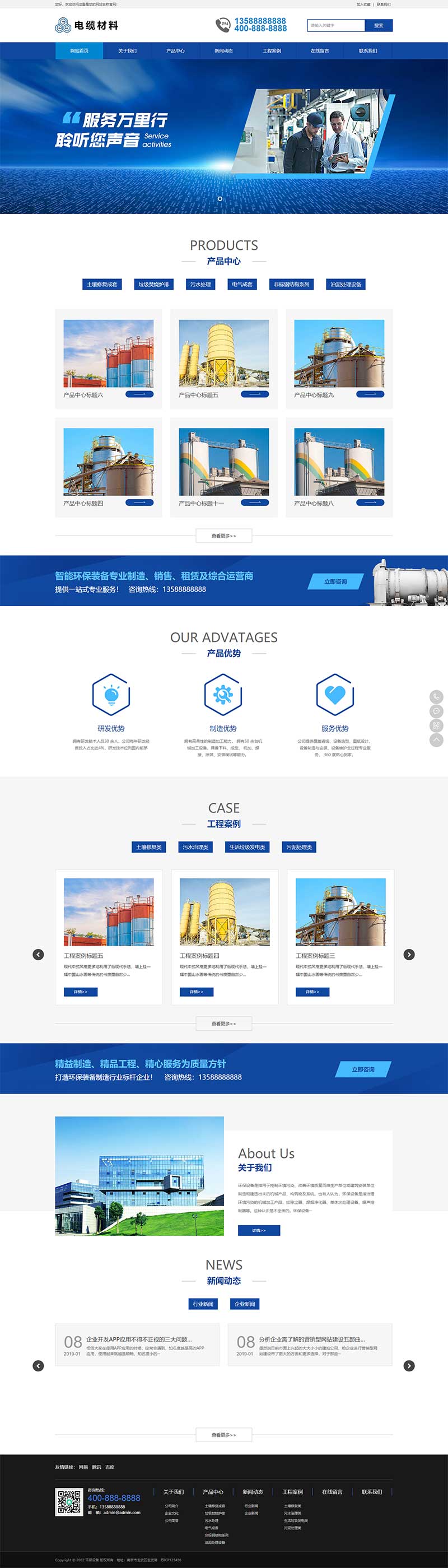 PbootCMS内核开发的网站模板,该模板适用于环保设备网站、蓝色机械设备网站等企业,当然其他行业也可以做,只需要把文字图片换成其他行业的即可;