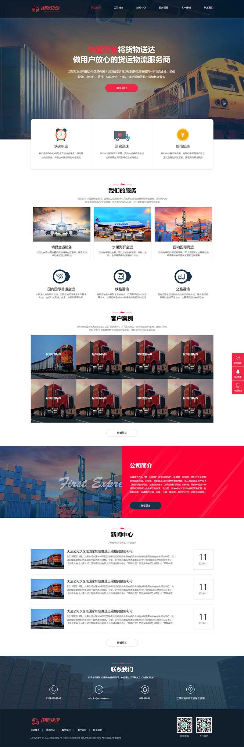 PbootCMS内核开发的网站模板,该模板适用于快递物流网站、快递货运网站等企业,当然其他行业也可以做,只需要把文字图片换成其他行业的即可; 响应式,同一个后台,数据即时同步,简单适用!附带测试数据! 友好的seo,所有页面均都能完全自定义标题/关键词/描述,PHP程序,