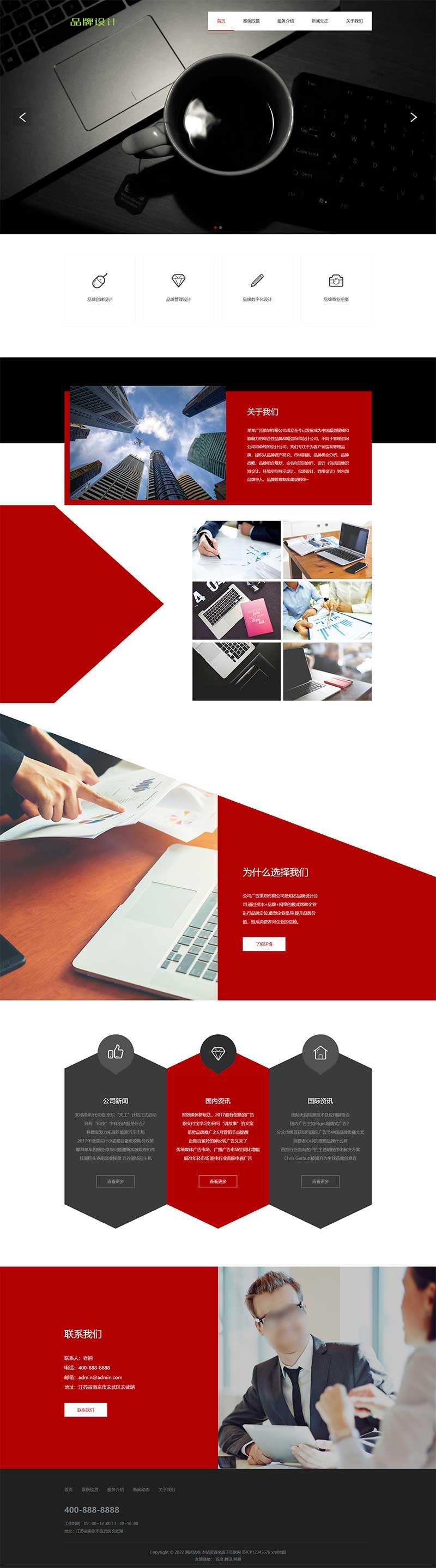 PbootCMS内核开发的网站模板,该模板适用于广告设计网站、设计公司源码等企业,当然其他行业也可以做,只需要把文字图片换成其他行业的即可; 自适应手机端,同一个后台,数据即时同步,简单适用!附带测试数据! 友好的seo,所有页面均都能完全自定义标题/关键词/描述,PHP