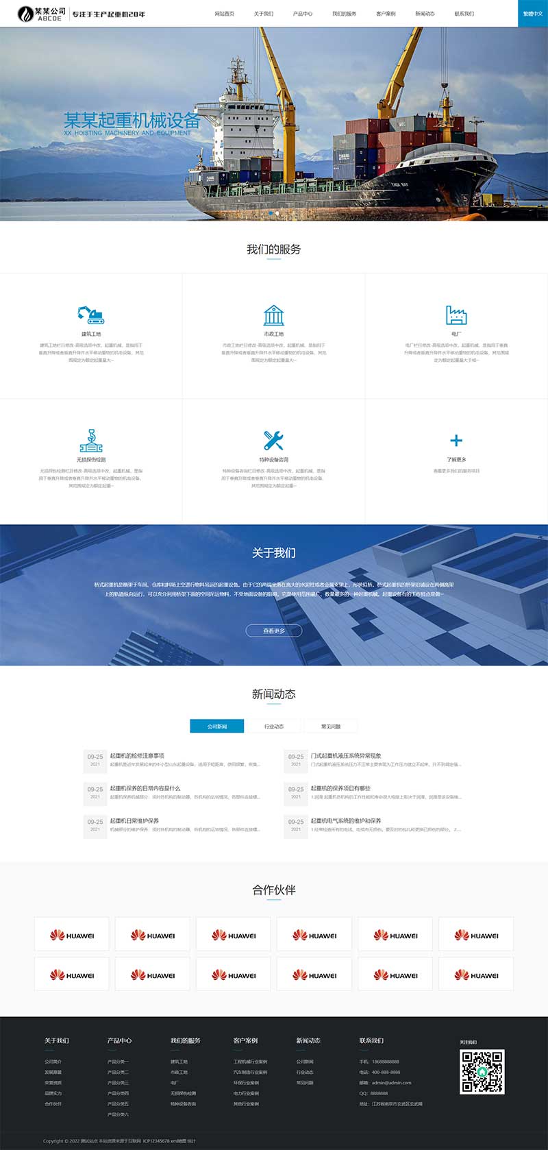 PbootCMS内核开发的网站模板,该模板适用于机械设备网站、重工企业网站等企业,当然其他行业也可以做,只需要把文字图片换成其他行业的即可;