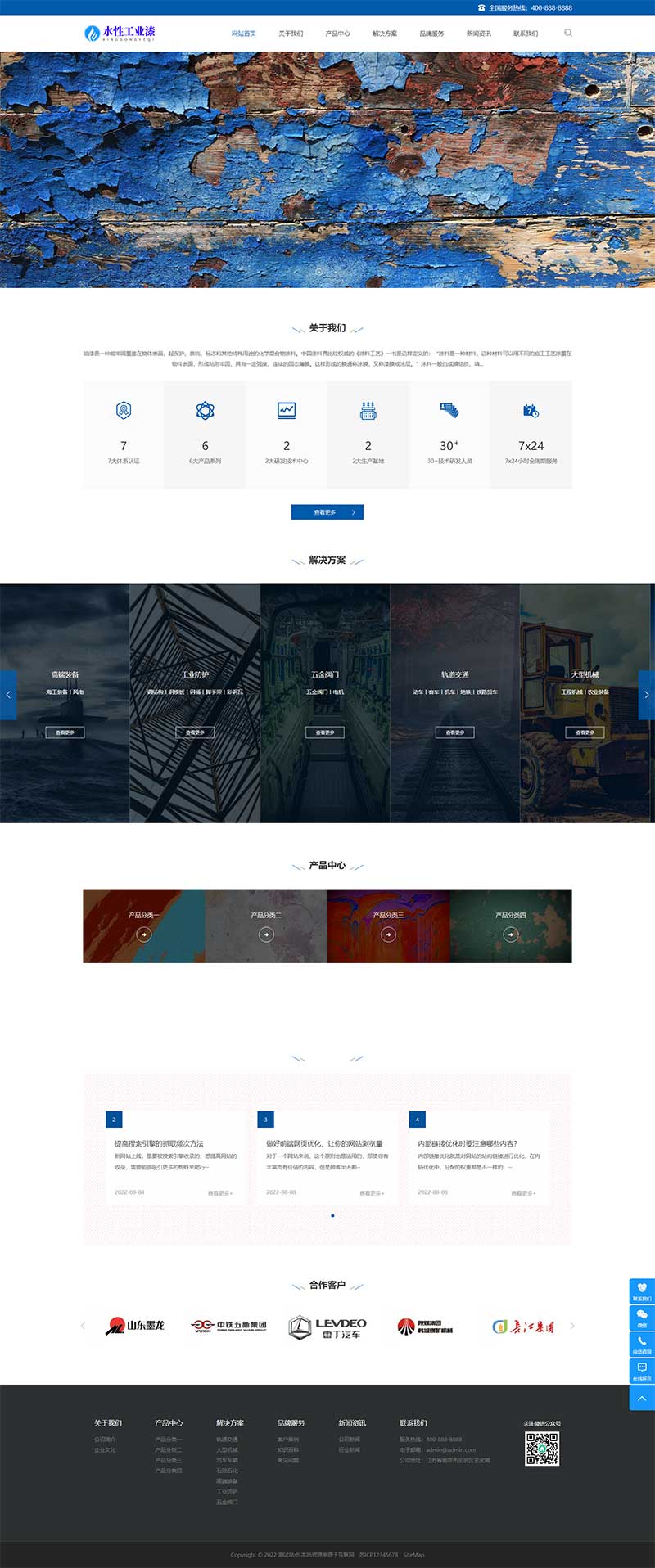 PbootCMS内核开发的网站模板,该模板适用于工业油漆网站、化工类网站、水性工业漆网站等企业,当然其他行业也可以做,只需要把文字图片换成其他行业的即可; 自适应手机端,同一个后台,数据即时同步,简单适用!附带测试数据! 友好的seo,所有页面均都能完全自定义标题/关