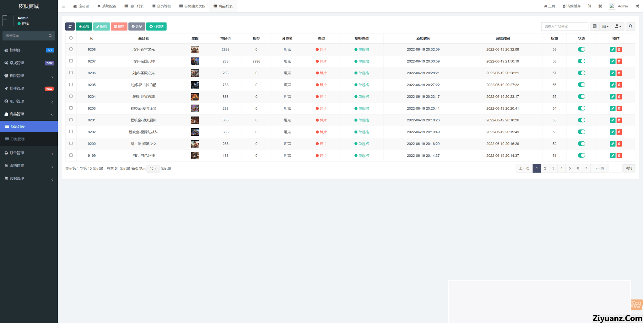 这个全新二开的源码提供了王者荣耀游戏皮肤抽奖系统,前端采用uniapp框架,支持生成H5和APP。API端使用thinkphp框架,后端采用FastAdmin框架。