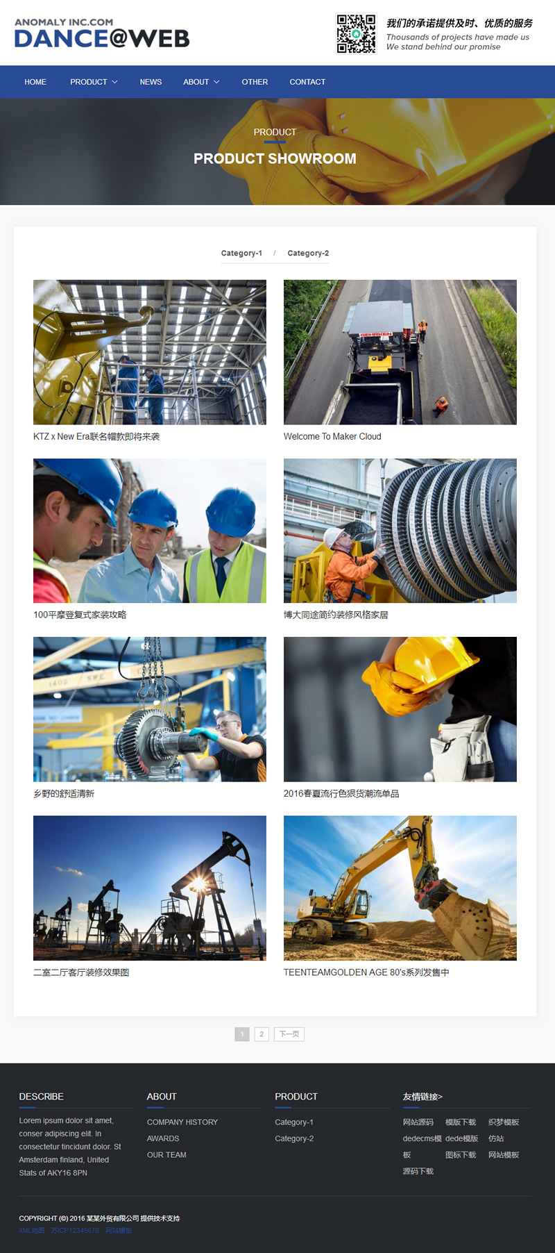 本套织梦模板采用织梦最新内核开发的模板,这款模板使用范围极广,不仅仅局限于一类型的企业,外贸类的网站都可以用该模板。你只需要把图片和产品内容换成你的即可,颜色都可以修改,改完让你耳目一新的感觉!布局规整,利于用户体验,手工书写DIV+CSS,代码精简。