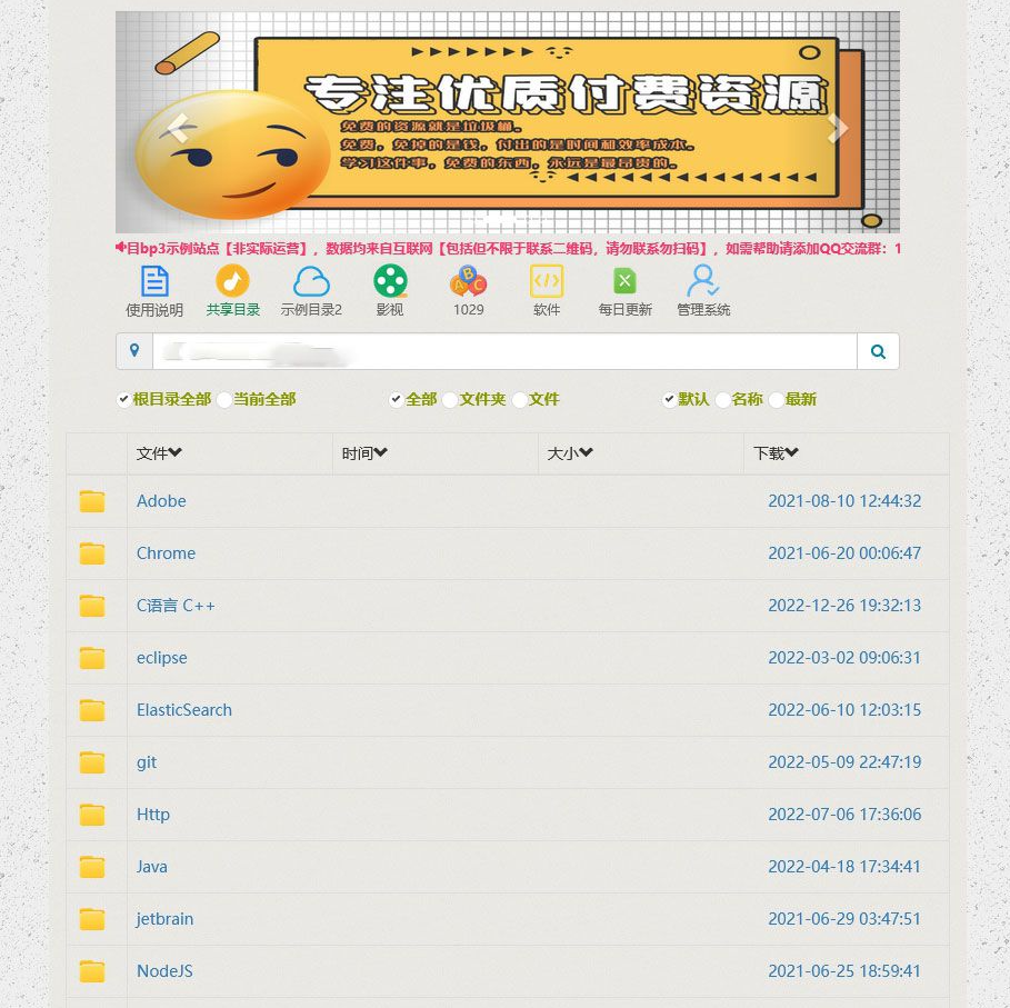 bp3能够对用户权限进行控制,你可以使用它作为目录展示工具,而不是一定要提供下载。