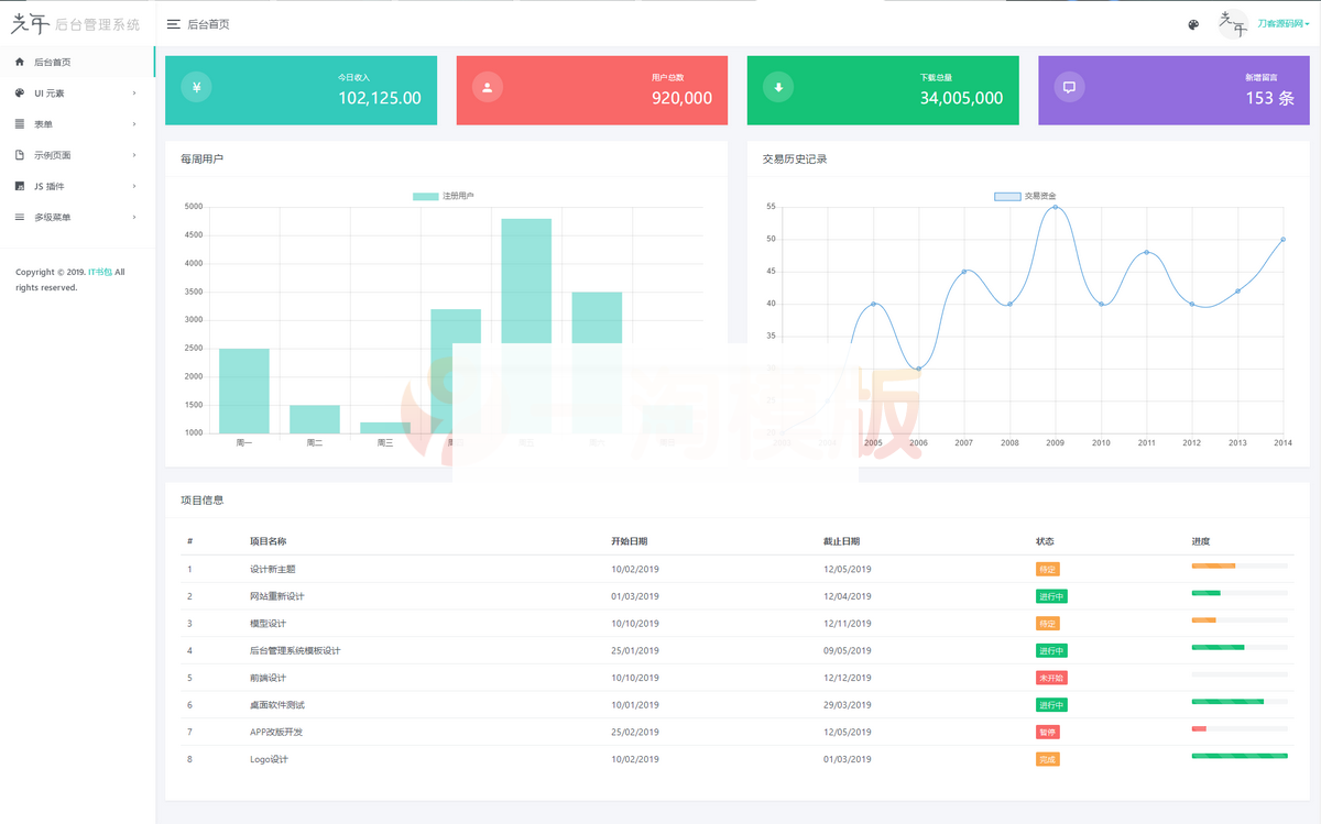 光年(Light Year Admin)后台管理系统模板是一个基于Bootstrap v3.3.7的纯html模板。 简洁而清新的后台模板,功能虽少,倒也满足简单的后台功能,也能够快速上手,希望大家支持。 网站主题切换,有默认白色,黑色,和渐变蓝绿色的半透明三种。 另外:logo、顶部和侧边栏可单独