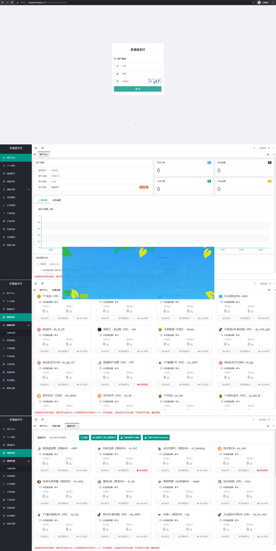 2021-12-25更新联通话费通道新增花椒双端H5通道更新虎牙通道更新腾讯系列通道