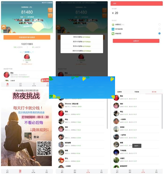 单独定制的版本,并未流通过,UI很漂亮,专业的早起打开平台,和之前的那个打卡套理财的,不是一个版本,运营逻辑也完全不同。支付已经接好派特了,简单替换下秘钥就可以了。带完整搭建教程,萌新都可以自己搭建了。