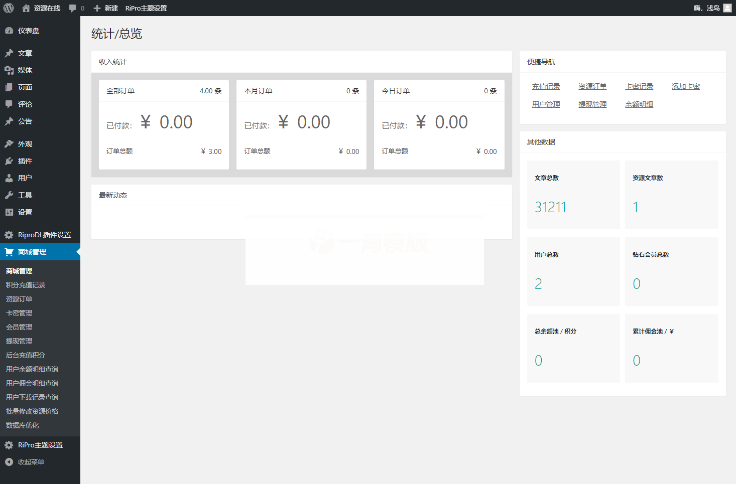 源码介绍: 还不错自带了RiPRO主题,包含素材资料,网站源码,网赚教程,营销软件,软件工具,技能学习等5大分类, 总包含31212个资料,需要需要的可以自己下载安装。 PS:具体要测试恢复,我只简单的测试下,里面的源码资源需要自己整理设置后才可见到效果,所以演示图片不好