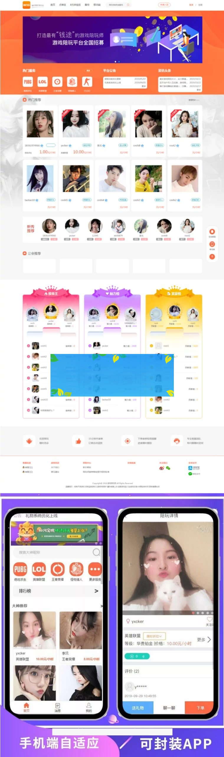 独家发布运营版游戏陪玩平台,仿比心游戏陪玩平台源码/tt语音聊天/美女约玩/声优服务/陪玩系统源码开黑/约玩源码下载