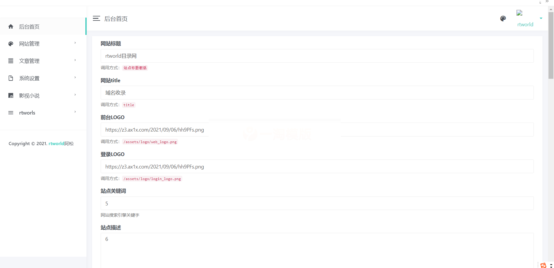 源码介绍: 1.多前台模板切换,多跳转模板切换 2.系统日志管理,系统数据清理工具 3.多网站分类,多文章分类,具有书籍,影视,等搭配功能 4.采集数据,站长管理,简便操作,提交即收录,各大网站推送收录你的域名, 快拥有属于你的目录网,本地TDK信息一键获取,去除接口卡带