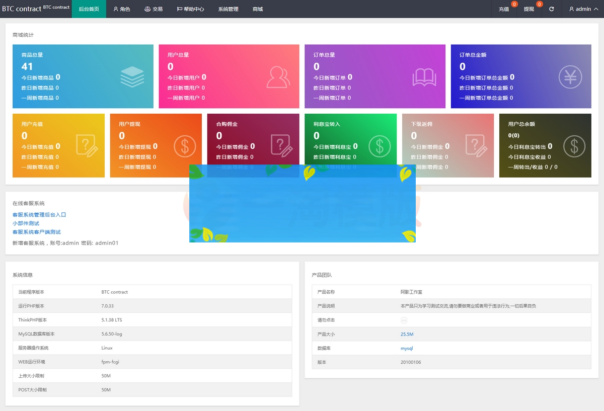 BTC理财,BTC contract,K线完整,带余额宝,内置客服系统,超完美,带搭建教程。