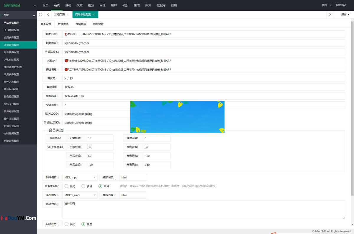 源码介绍: 测试环境:PHP7.0+MySQL5.6 基本介绍: 1. 后台增加自定义参数,对应会员升级页面 2.视频,演员,专题,收藏,会员系统模块齐全 3. 直接指定一个分类下视频为免费专区 4.完整的卡密支付体系,无人看管,无需挂码。 5.三个播放界面,未注册会员、普通注册会员,VI