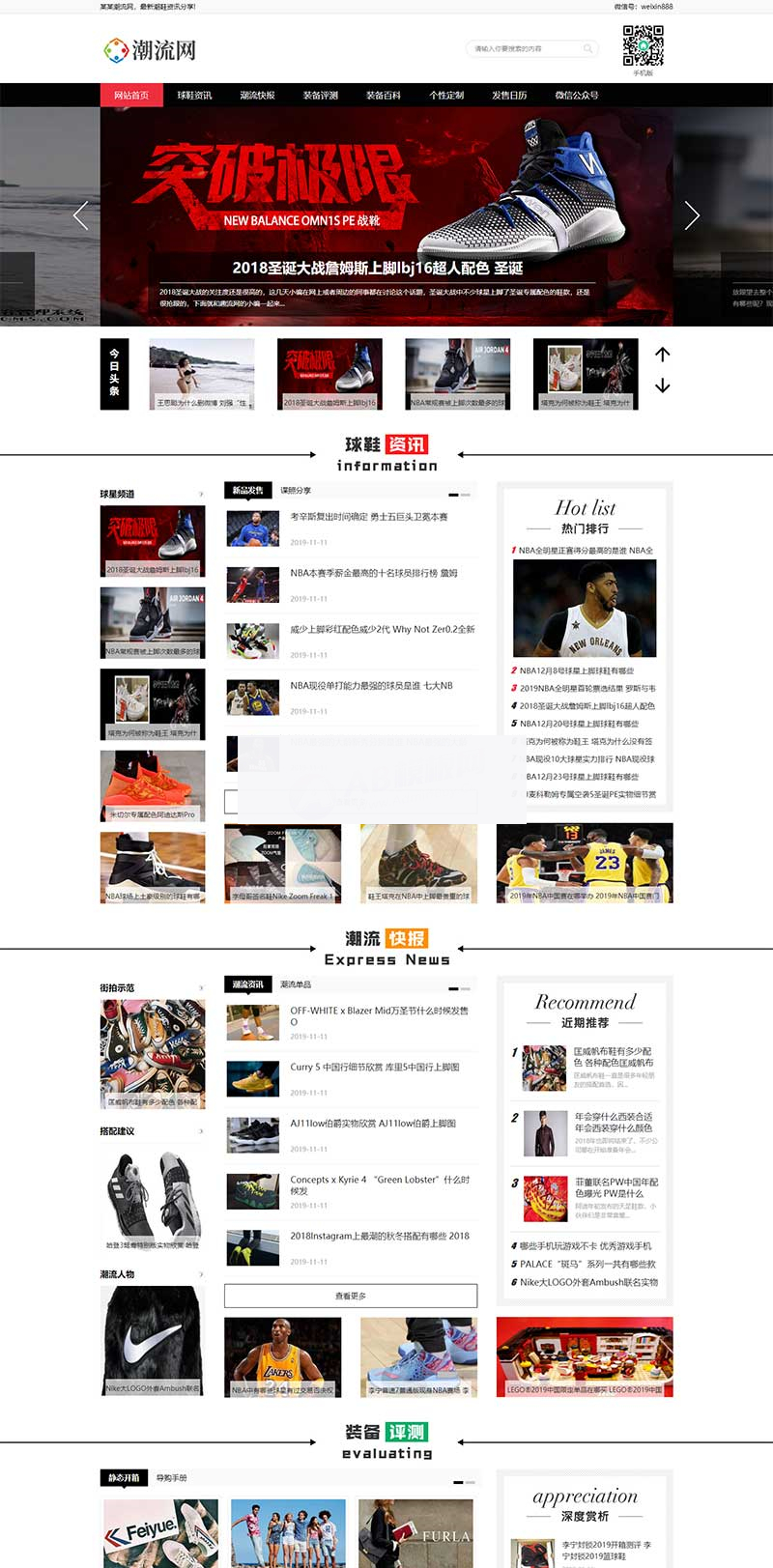 本套织梦模板采用织梦5.7内核开发的模板,这款模板使用范围广,不仅仅局限于一类型的企业,潮流资讯、球鞋运动装备类的网站都可以用该模板。你只需要把图片和文章内容换成你的即可,颜色都可以修改,改完让你耳目一新的感觉!布局规整,利于用户体验,手工书写DIV+CSS,代码精