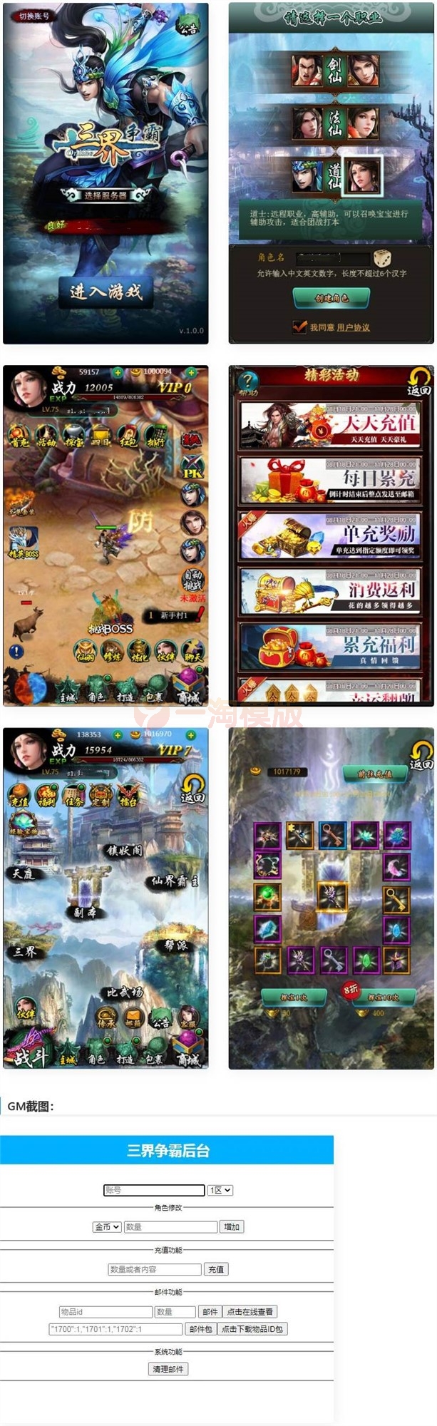 三网H5游戏三界争霸H5+Win一键既玩服务端+GM后台