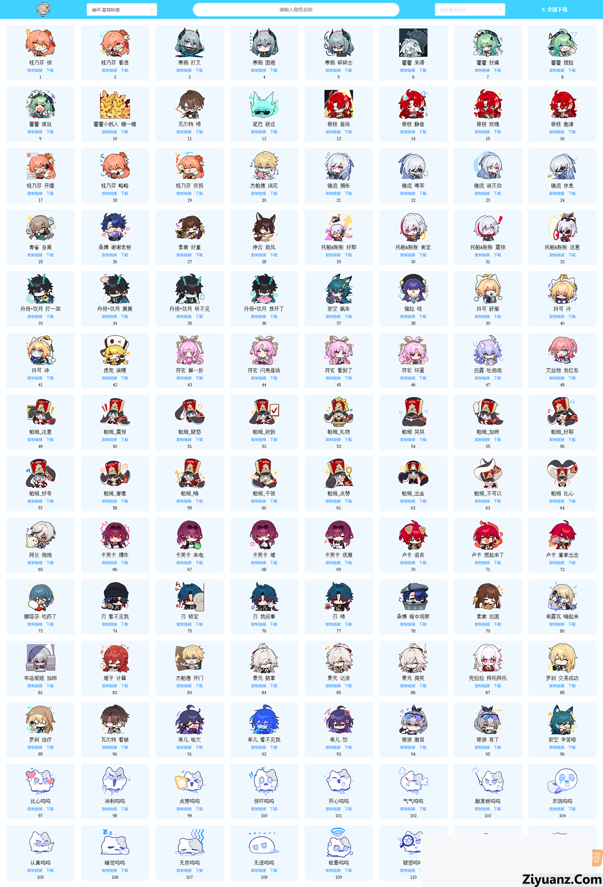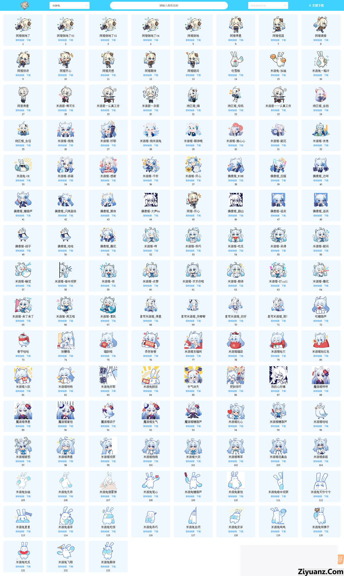 米游社表情包整合网站源码,来自Github大佬的项目,包含米游兔123枚,米游社 玩家12枚,崩坏 星穹铁道112枚,绝区零218枚,NAP32枚,崩坏RPG62枚,崩坏3-1282枚,原神 V官方663枚,未定 官方199枚,原神 V玩家35枚,崩坏3-2146枚,崩坏2 玩家31枚,崩坏学园2,支持复制表情包