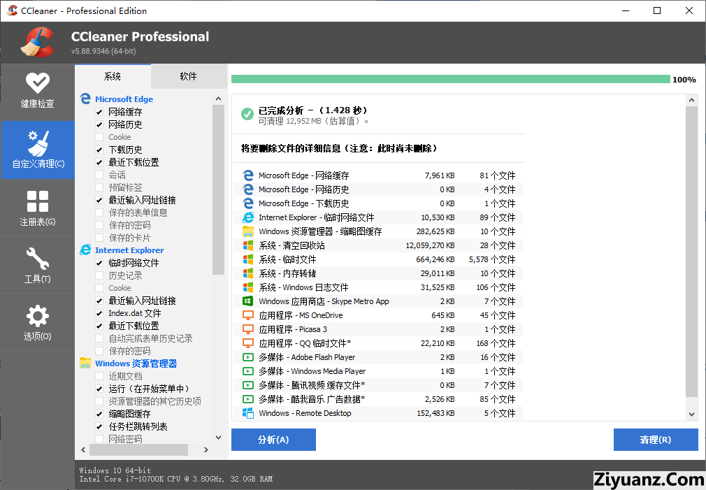 CCleaner是一款免费的系统优化和隐私保护工具,它的体积小、扫描速度非常快,支持自定义清理规则,增强了应用程序清理范围和效果。CCleaner是Piriform(梨子公司)最著名广受好评的系统清理优化及隐私保护软件,也是该公司主打和首发产品,可以有效清除各种系统垃圾文件及应用程序垃圾,同时具备系统优化功能;可以对临时文件夹、历史记录、注册表冗余条目等进行垃圾清理,附带启动项管理、软件卸载功能。