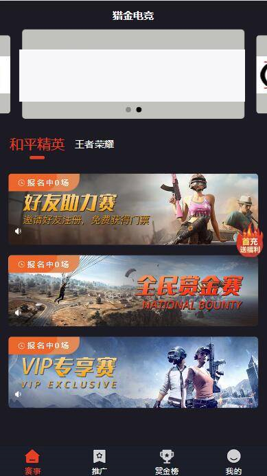 源码介绍:(仅供学习搭建之用,请勿商用或其他违法用途,商用请支持正版) 掌趣电竞是最近上线的一个电竞娱乐平台,在掌趣电竞平台报名参与游戏竞技比赛,有几率获得赏金奖励。 比如报名参与和平精英比赛,游戏中击杀一人就能赚1元。针对喜欢玩和平精英,王者荣耀的用户群体。