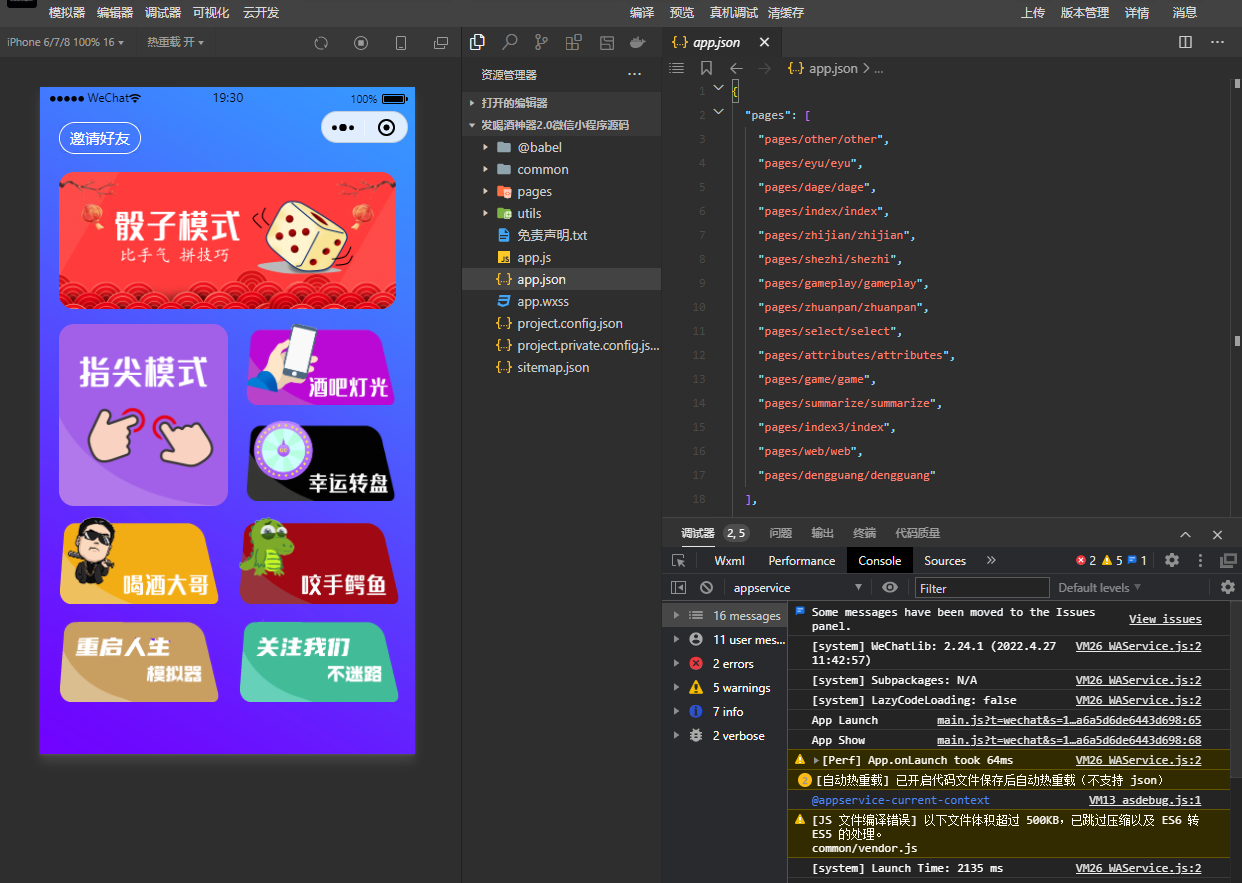 很火的酒吧灯光喝酒多种游戏一体的微信小程序搭建教程,支持对接流量主广告收益 功能介绍: 淘宝购买的云开发喝酒神器2.0微信小程序源码(带流量主和重启人生),云开发小程序无需服务器即可搭建,配置有安装文档教程 划拳已经过时了,抖音上最火的喝酒神器,饭局、酒吧、KTV