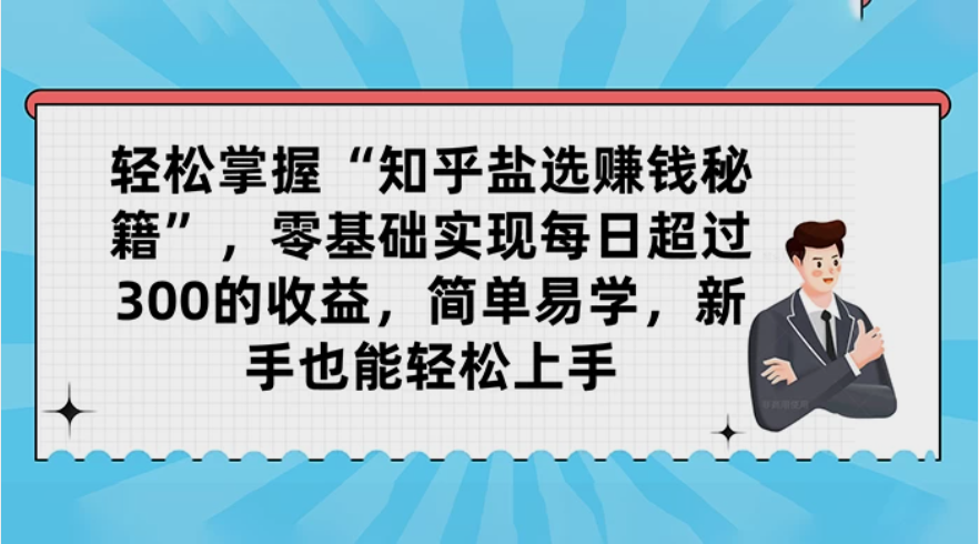大家好,今天给大家带来一个,《轻松掌握“知乎盐选赚钱秘籍”,零基础实现每日超过300的收益,简单易学,新手也能轻松上手》