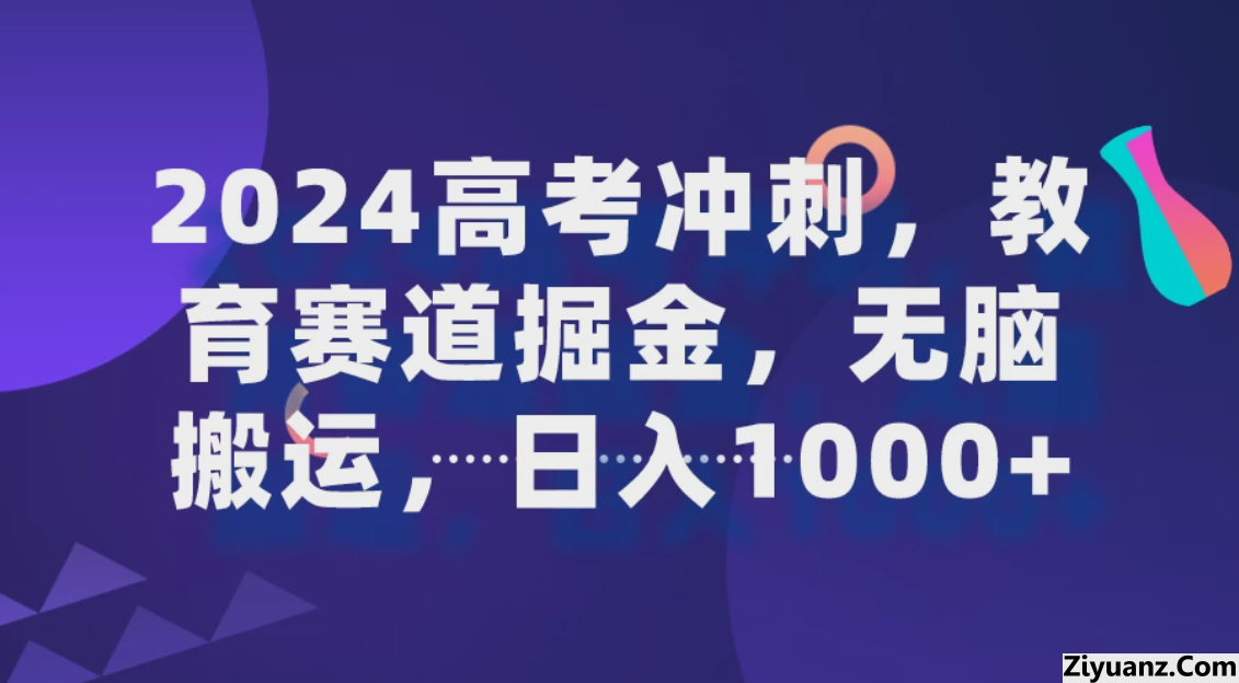 项目介绍 今天给带来的项目是“2024高考冲刺,教育赛道掘金,无脑搬运,日入1000+”。临近高考,大部分高三学子已经开始冲刺了。但也有很多学生由于高一高二没打好基础,高三跟不上节奏,又不甘于堕落。再加上今年新高考改革,做题更加灵活,难度更大。于是有很多